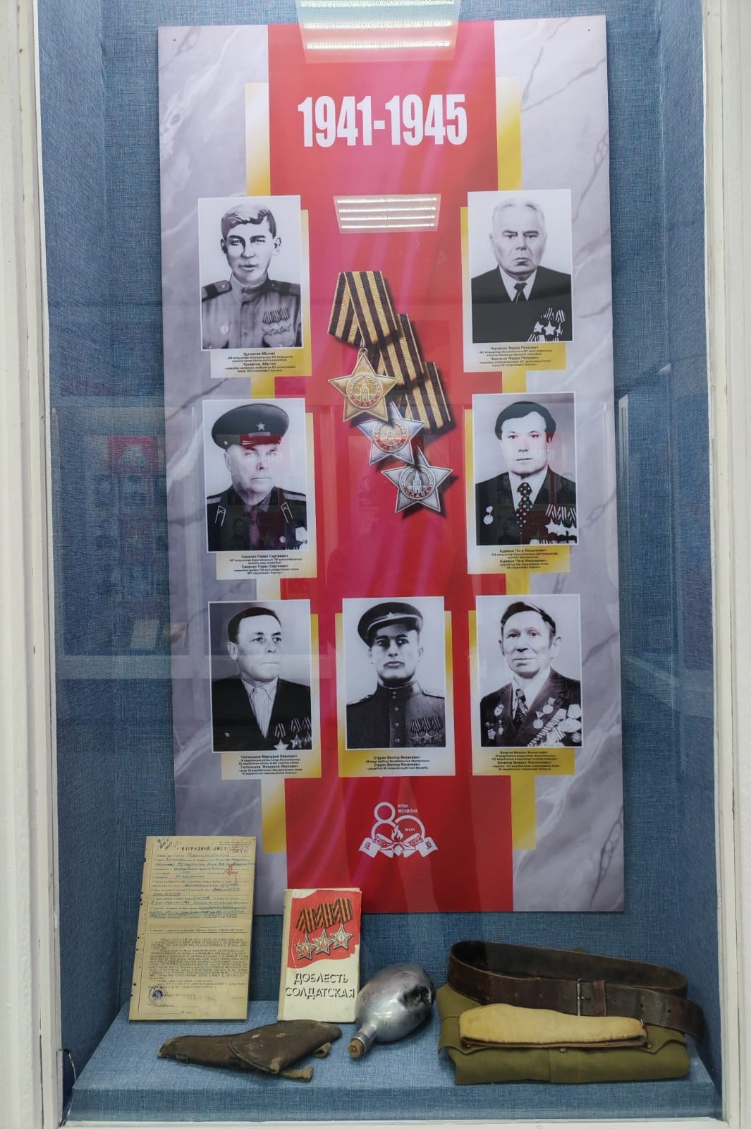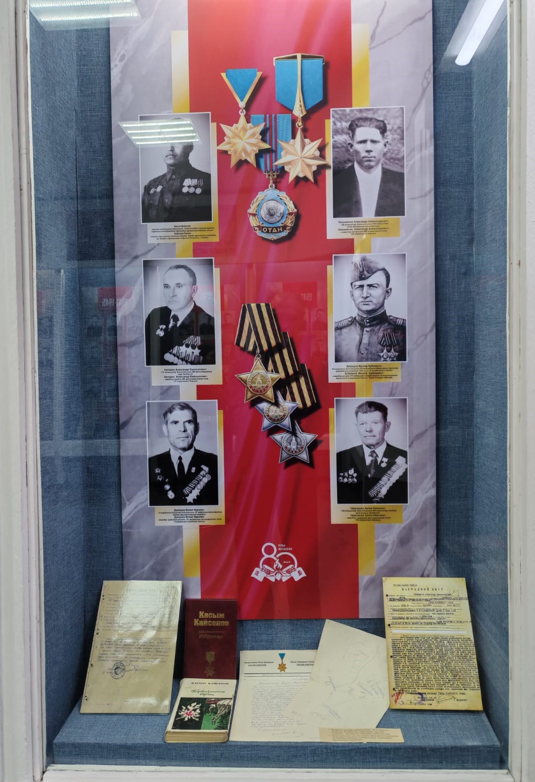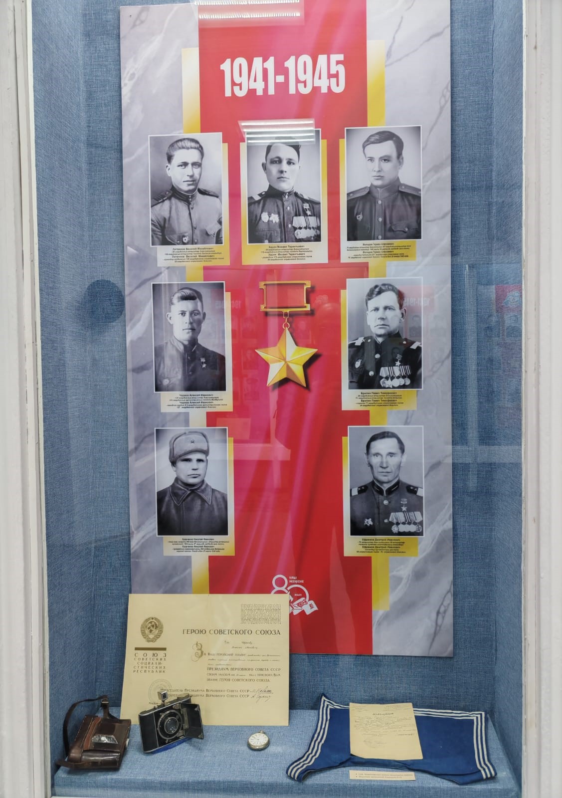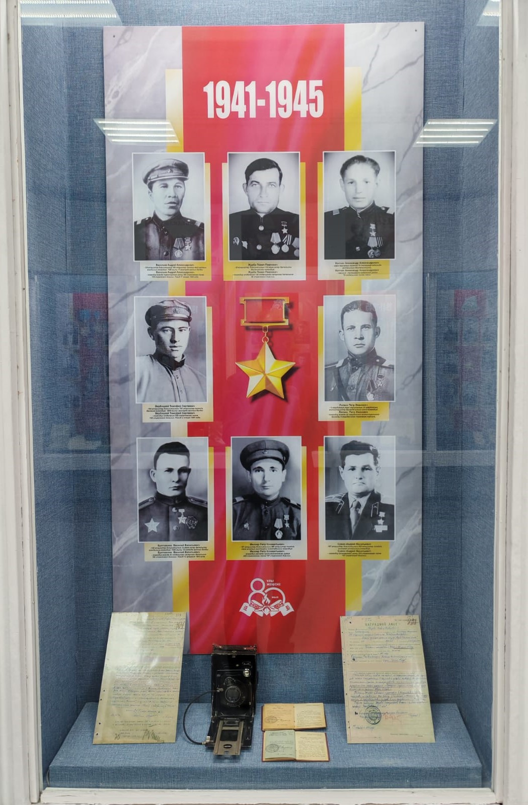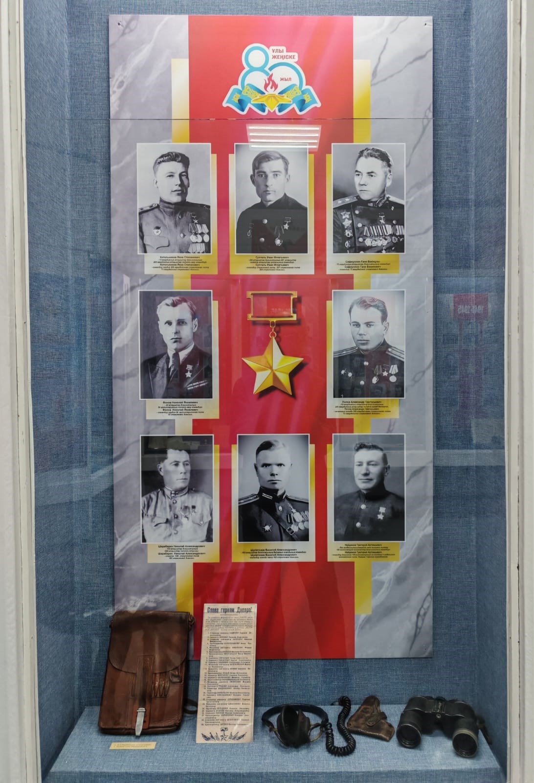 Экспозицияның бірінші бөлімі — Шығыс Қазақстандық-Кеңес Одағының Батырлары, Даңқ ордендерінің иегерлері, «Халық қаһарманы» атағына ие болған Ұлы Отан соғысының қатысушылары туралы материалдар ұсынылған фотогалериядан тұрады. Экспозицияға қойылған музейдің бірегей топтамасындағы фотосуреттер өте әсерлі. Әр сурет тек соғыс жайлы ғана емес, сонымен бірге соғыс тарихын да баяндайды.