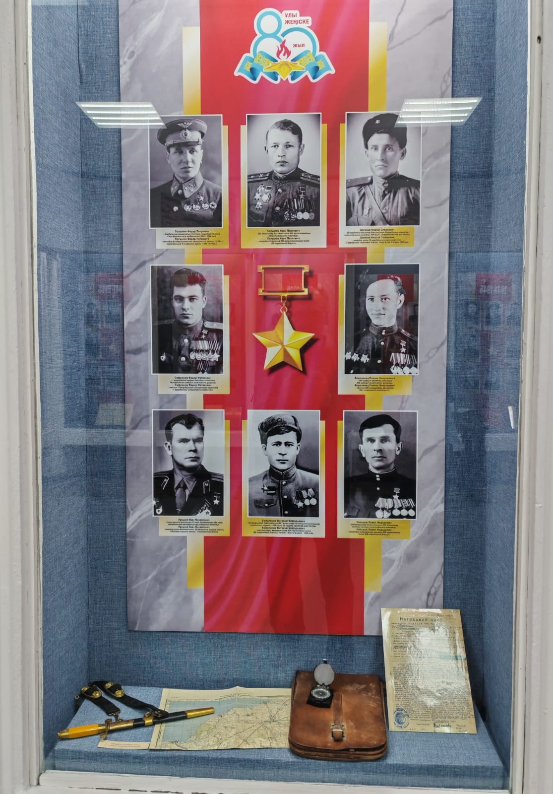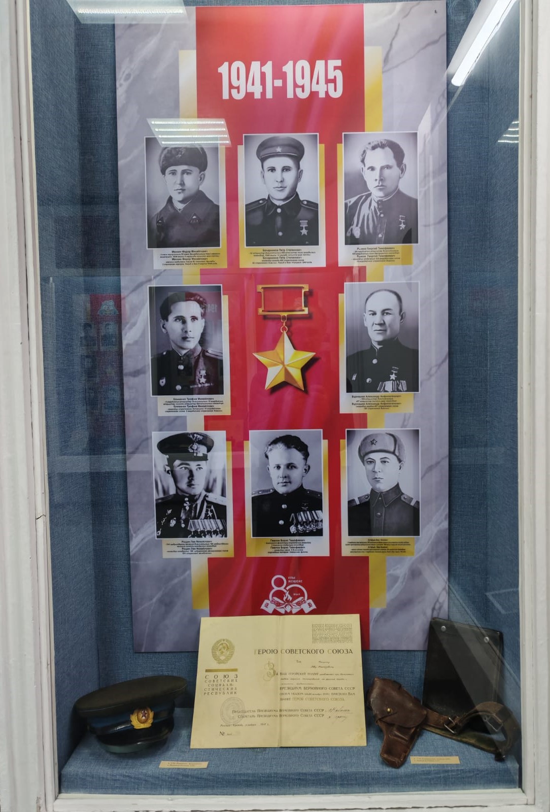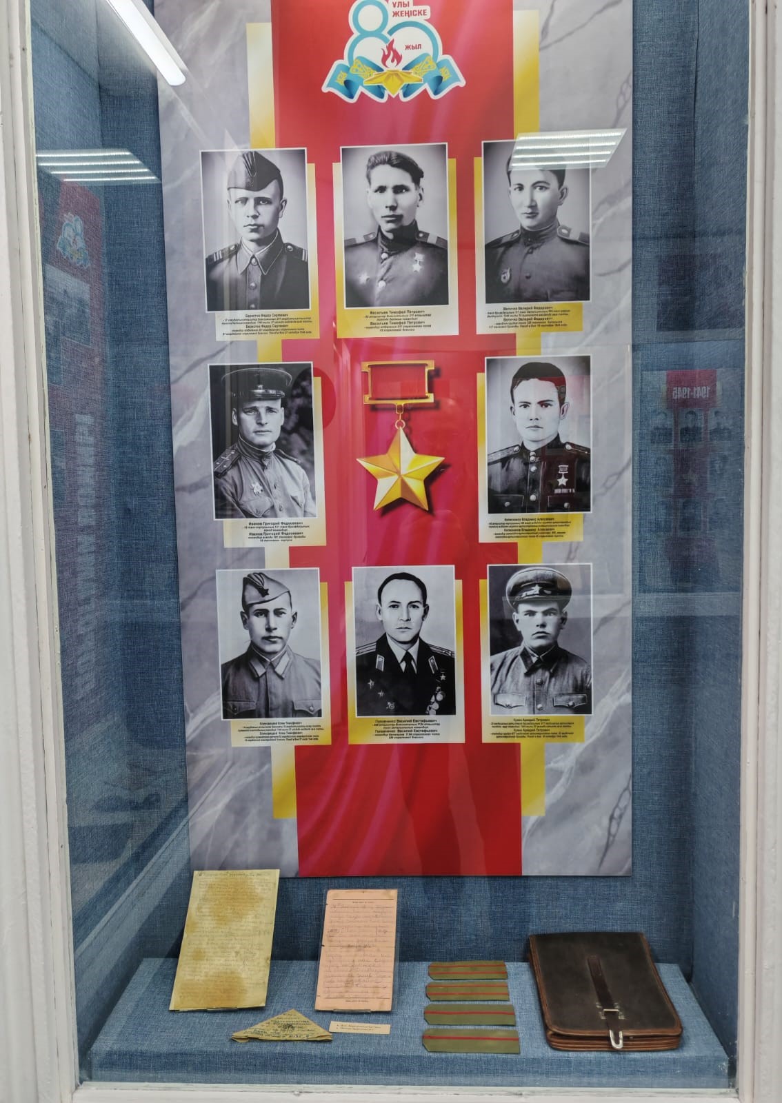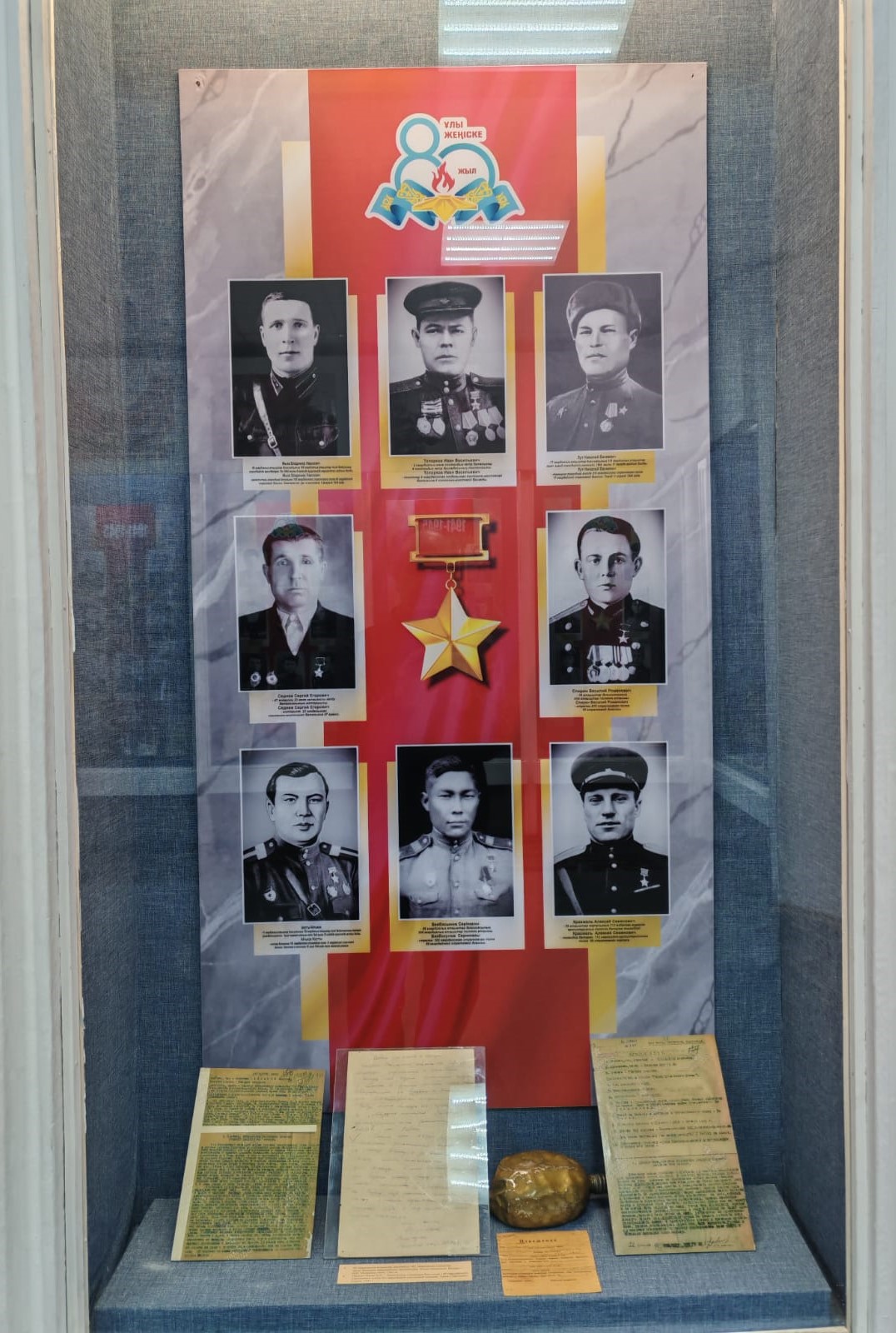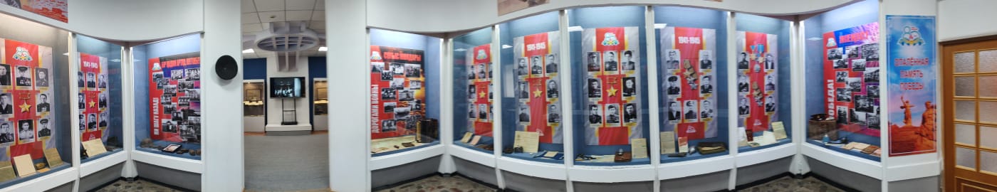 Экспозицияның бірінші бөлімі — Шығыс Қазақстандық-Кеңес Одағының Батырлары, Даңқ ордендерінің иегерлері, «Халық қаһарманы» атағына ие болған Ұлы Отан соғысының қатысушылары туралы материалдар ұсынылған фотогалериядан тұрады. Экспозицияға қойылған музейдің бірегей топтамасындағы фотосуреттер өте әсерлі. Әр сурет тек соғыс жайлы ғана емес, сонымен бірге соғыс тарихын да баяндайды.
