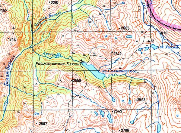 Рахмановское озеро находится на высоте 1760 м. в горной системе Южного Алтая, близ г.Белуха. имеет площадь 1,1 км2.(рис.3). Озеро считается мертвым, так как в воде нет рыбы, но встречаются микроорганизмы, приспособленные к таким условиям.  Радон выделяется из гранитных слоев земной коры. Гидрологический режим Рахмановского озера считается высокогорным. Питание происходит за счет подземных вод из гранитных скал, с постоянным выходом 12 термальных минеральных источников вдоль реки Арасан.