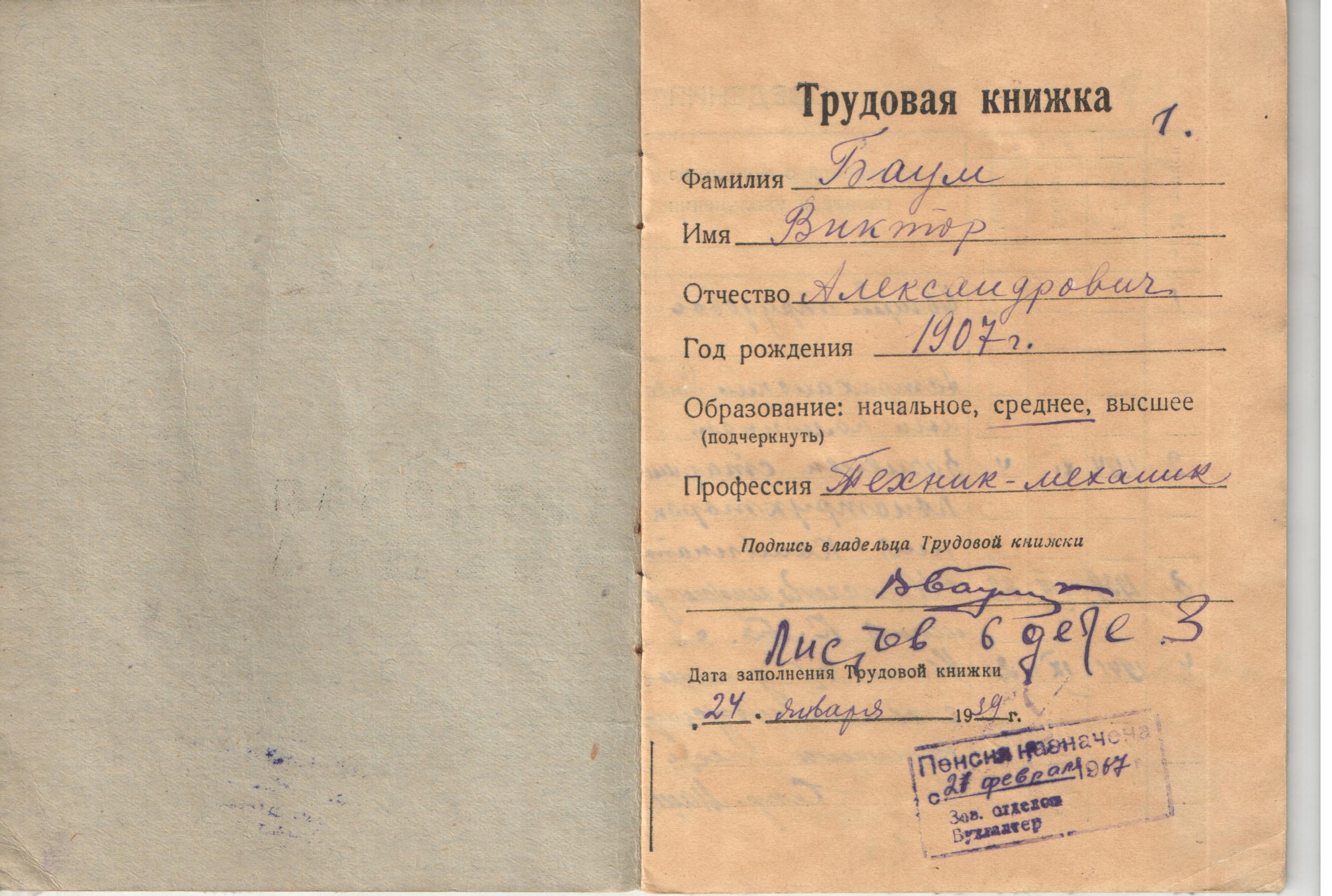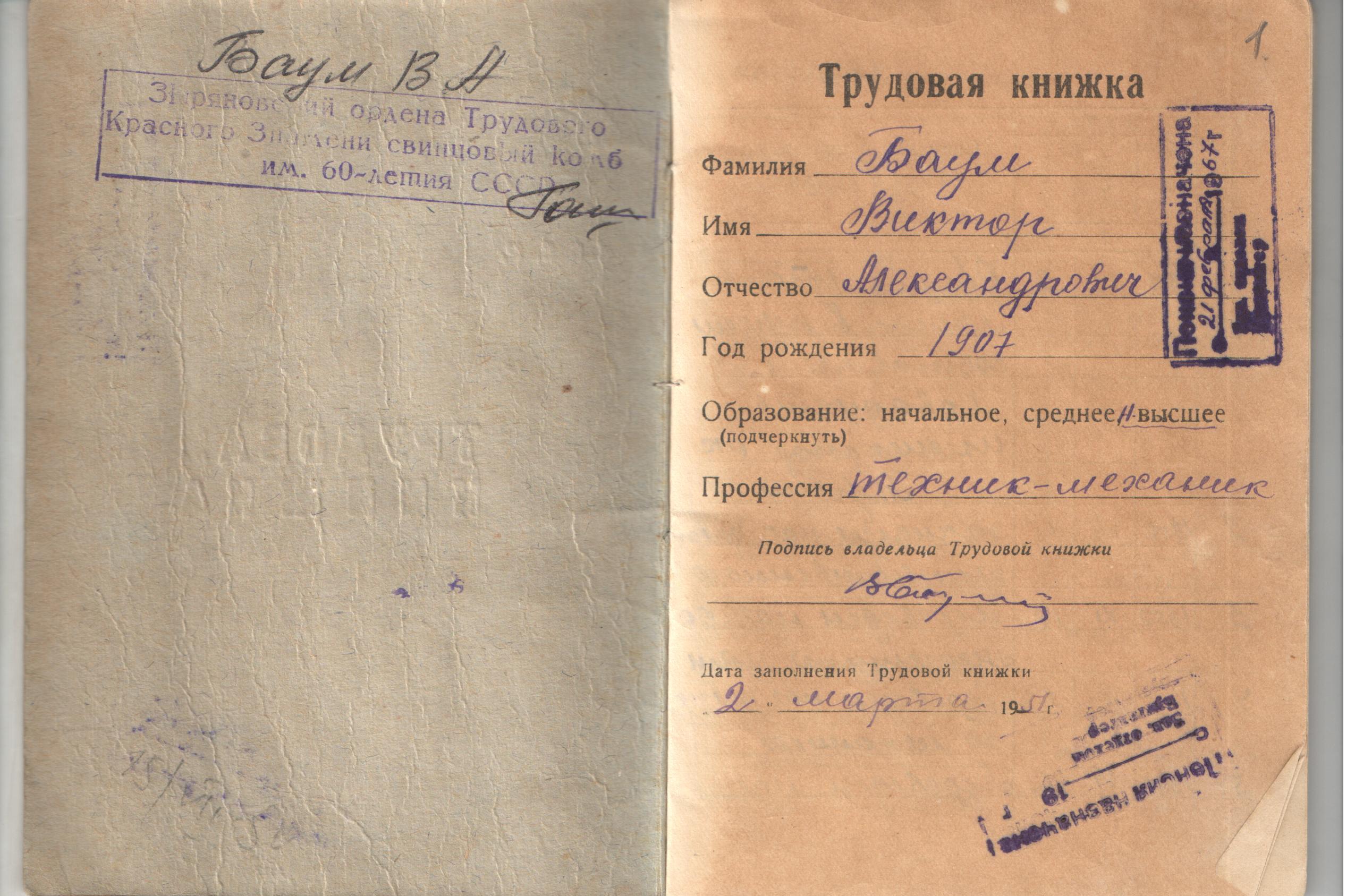 Баум Виктор Александрович, родился 06 февраля 1907 года в Новоузенске Саратовской губернии. В семье он был 13-м ребенком.