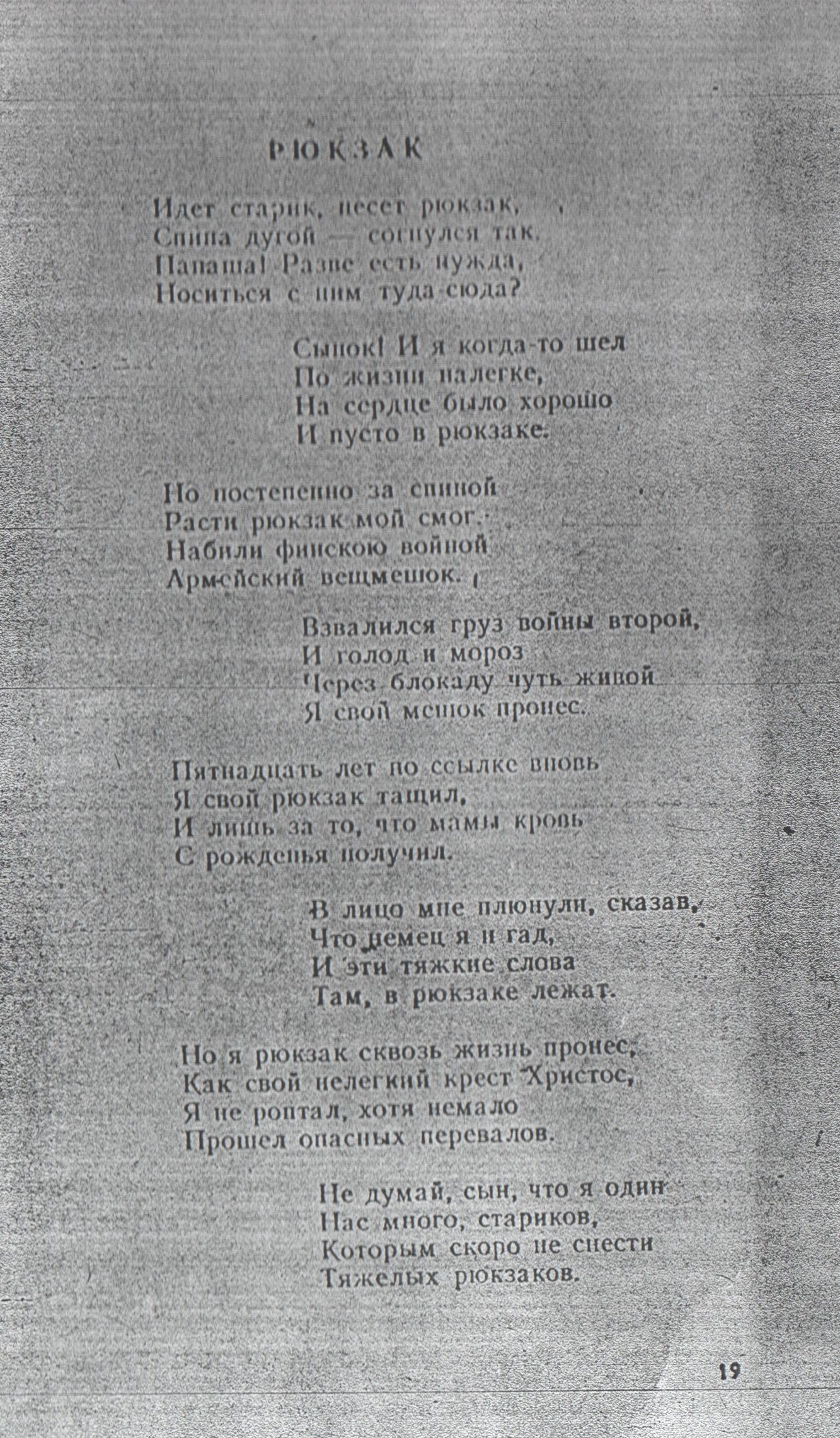 Все надеялись, что после окончания войны немцам будет послабление, лелеяли надежду на амнистию, но ее не последовало. Более того, переселенцев повергло в шок, когда их в 1949 году вызвали и предупредили, что если они нарушат существующий для них режим, то это грозит 20-ю годами заключения.